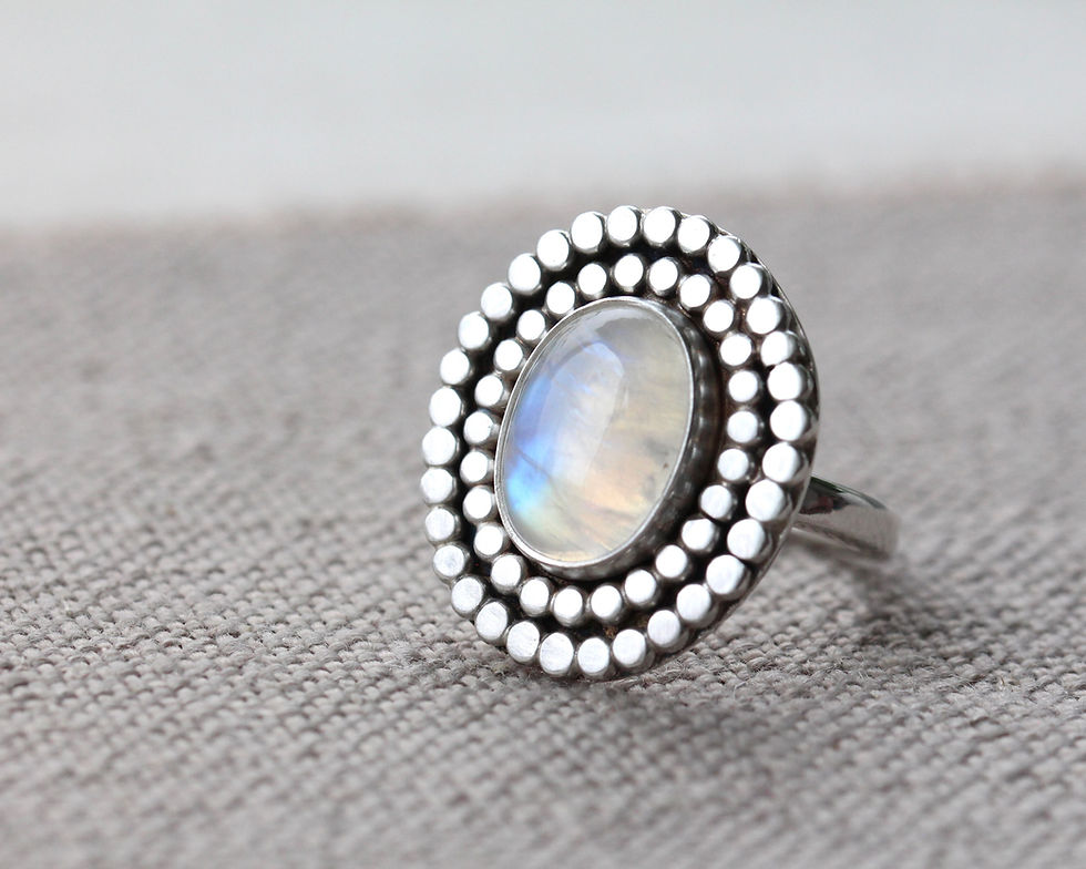 MOONSTONE DOTTED RING - SIZE 6 3/4 - 7